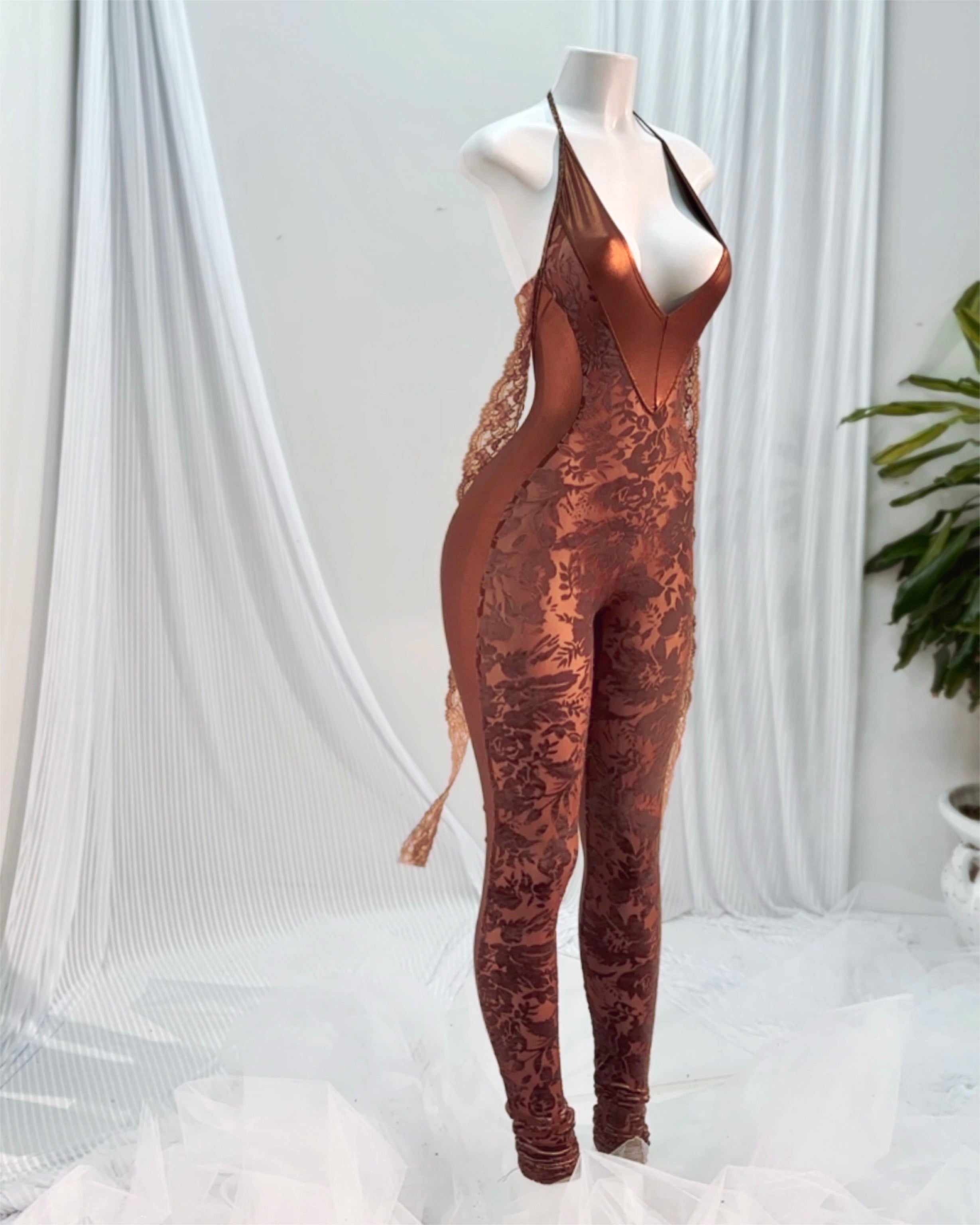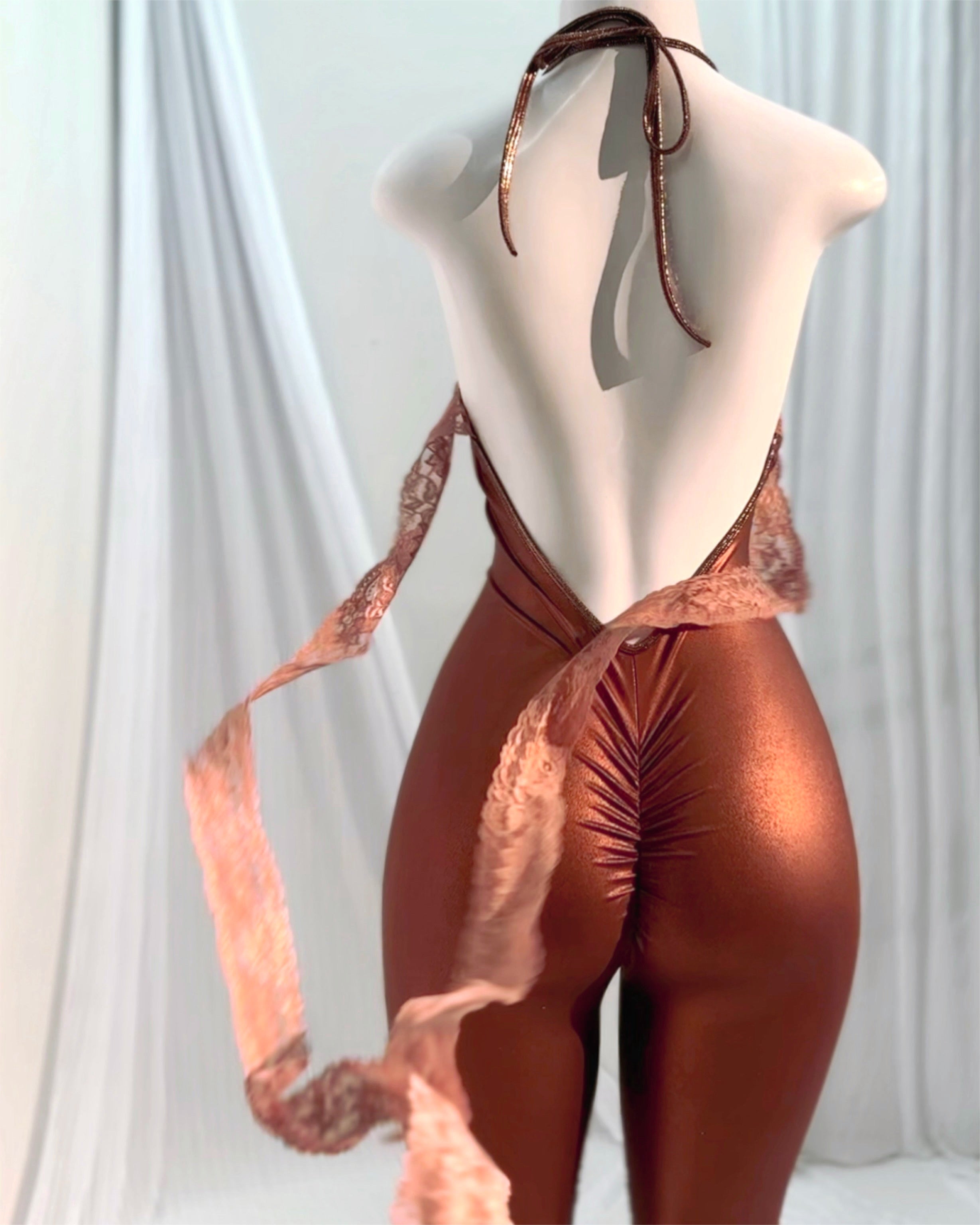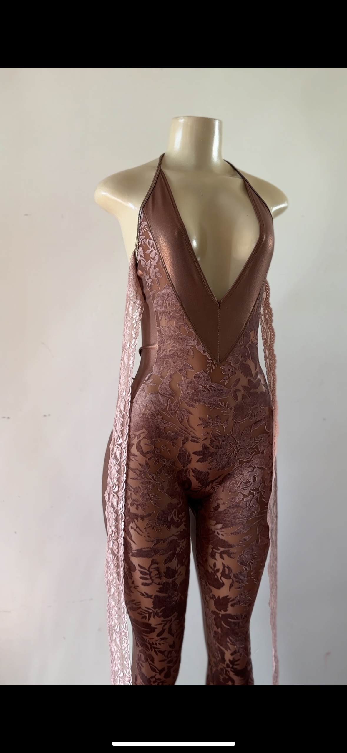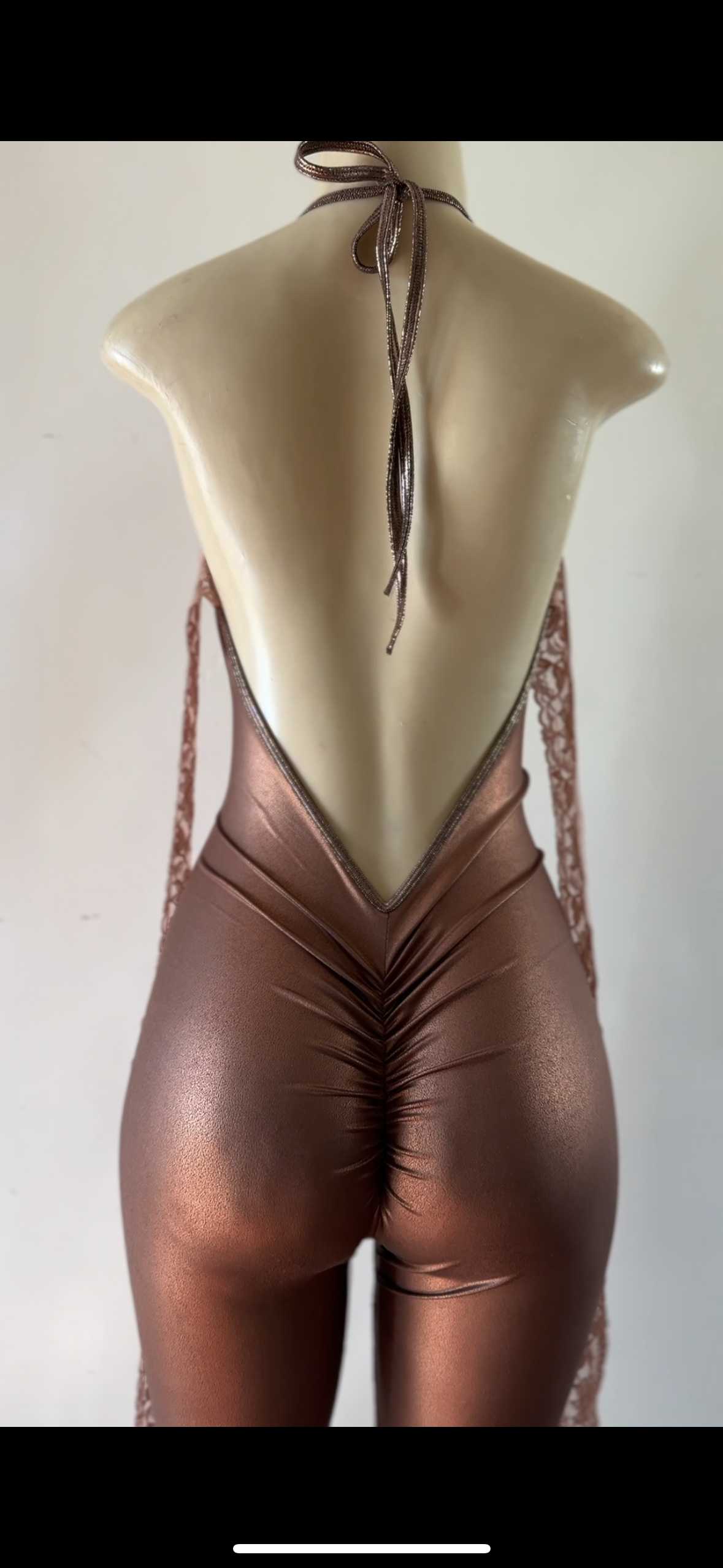 Handmade Facet Designed soft, stretch Chocolate Rose front. Soft distressed, metallic Stretch back, deep V back. Elastic Shoulder Straps Stretch-to-fit sizes 0-12